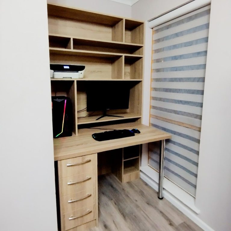 Instead of placing a cabinet in the niche, I turned it into a functional and elegant workspace — making much better use of the space.